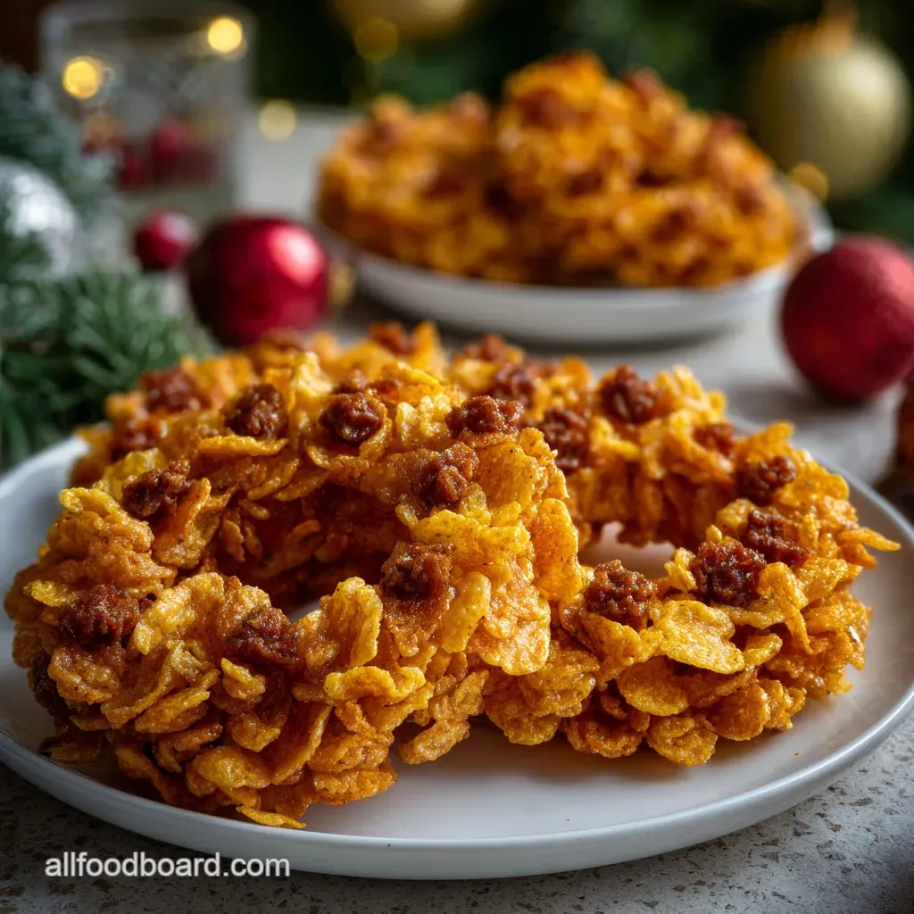 Myth: These are just for kids. Truth: The nostalgic combination of butter, salt, and sugar is a universal palate pleaser. The "snap" of the cereal and the heat of the cinnamon candy appeal to adults just as much as children, making the Christmas Cornflake Wreaths a cross generational favorite.