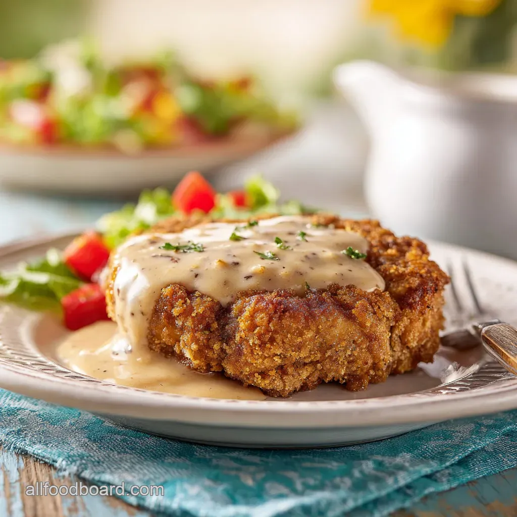 When it's time to plate, I like to keep it simple. A large, white plate makes the golden brown of the steak and the creamy white of the gravy pop. Place the steak down first, and only ladle the gravy over half of it. This lets your guests see that beautiful, craggy crust you worked so hard to create.