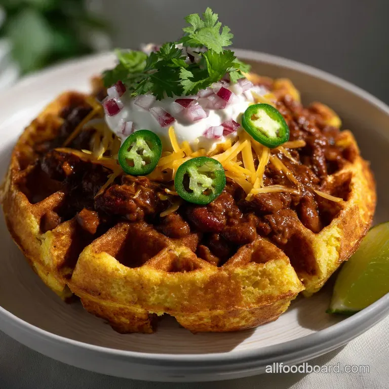 The presentation should emphasize the contrast. Place the hot, crisp waffle in a shallow bowl first, then ladle the thick, velvety chili directly into the center "well." This keeps the outer edges of the waffle crisp while the center begins to absorb the savory juices. If you're a fan of these "all-in-one" hearty meals, you might also enjoy the structural satisfaction of a Stuffed Peppers with recipe or the creamy topping of our Shepherds Pie recipe.