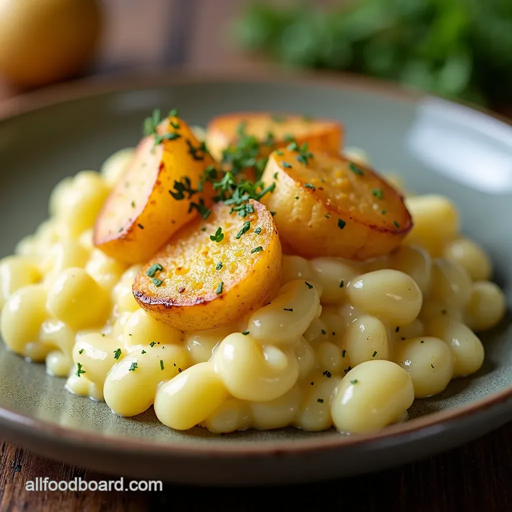 The infusion stage is critical. We use 2 cups of heavy cream and 1 cup of whole milk, warming them gently. Into this blend goes 3 large cloves of finely minced fresh garlic and 1 tablespoon of fresh thyme leaves. Crucially, we add 1/4 teaspoon of freshly grated nutmeg; this spice provides an irreplaceable warmth that complements the beef perfectly.