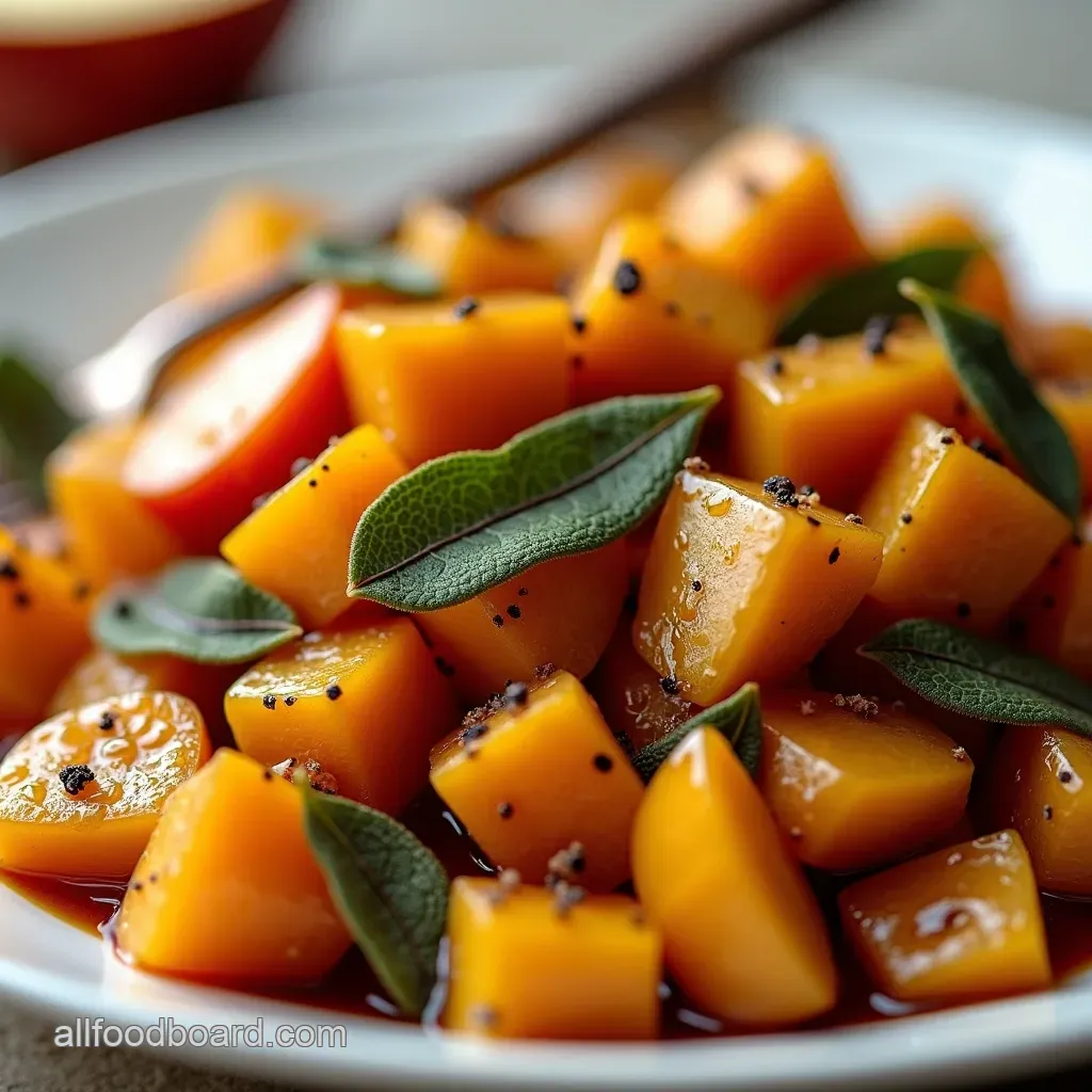 A crucial flavour driver is 1 tablespoon of finely chopped fresh sage leaves, balanced by 1/2 teaspoon of ground cinnamon and a mere 1/4 teaspoon of freshly ground black pepper, complemented by 1/2 teaspoon of kosher salt to enhance the sweetness.