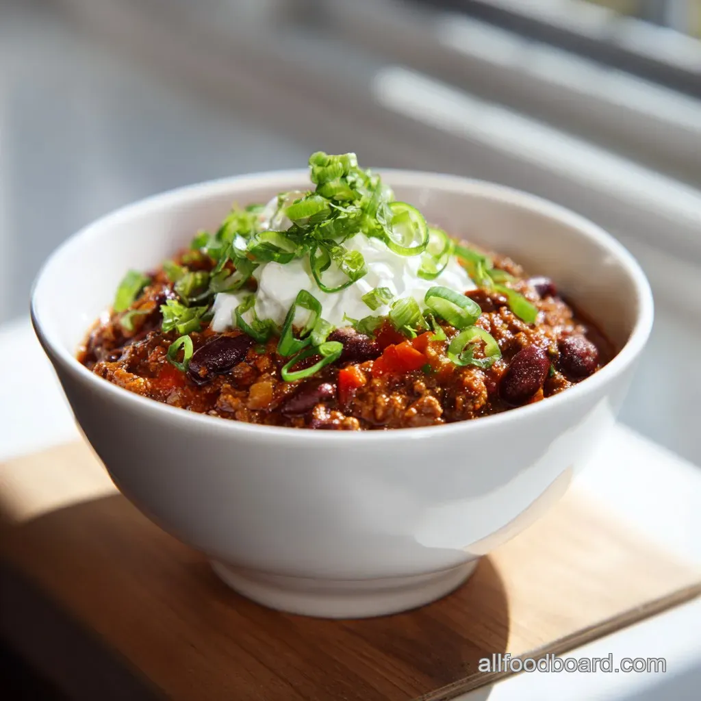 - The Freshness: Mince some fresh cilantro and green onions right before serving. The bright green color makes the deep red chili pop.