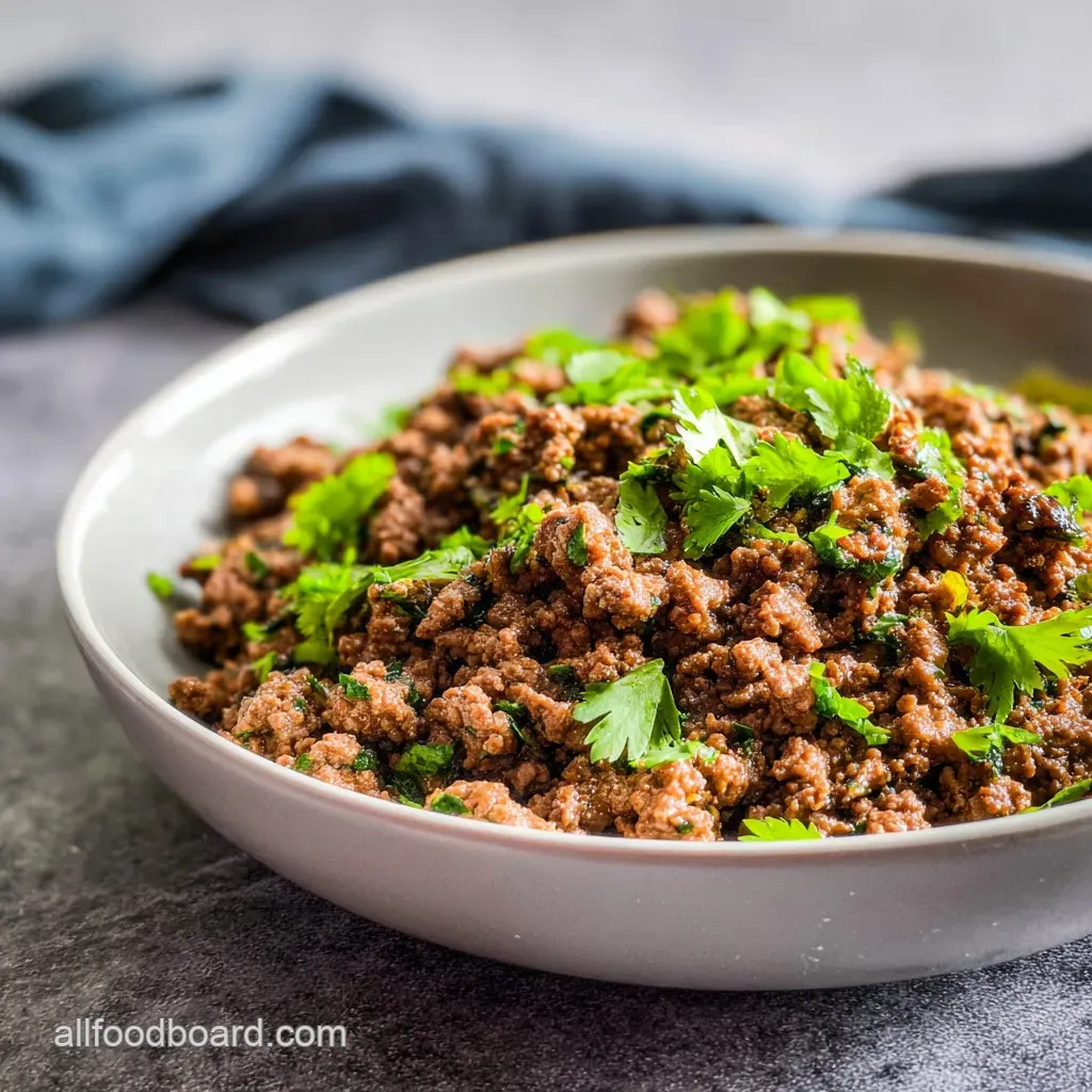 Serve the seasoned beef mixture on its own or over sautéed greens. The recipe is naturally low-carb, but ensure you skip serving it with starches like potatoes or rice.