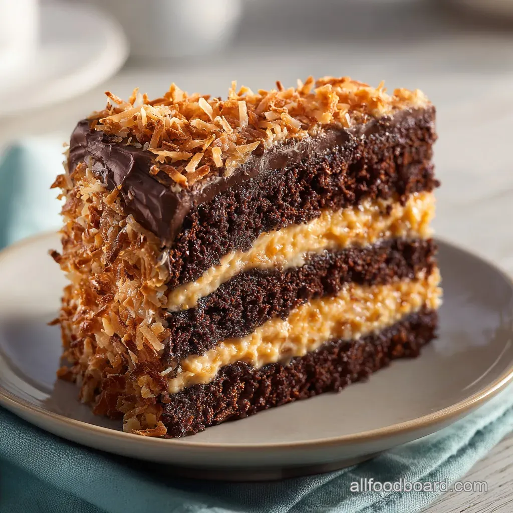The Restaurant Approach Instead of a full cake, serve a "deconstructed" version. Place a neat cylinder of chocolate cake in the center of the plate, pipe a precise quenelle of coconut pecan frosting on top, and garnish with a fresh raspberry and a mint leaf.