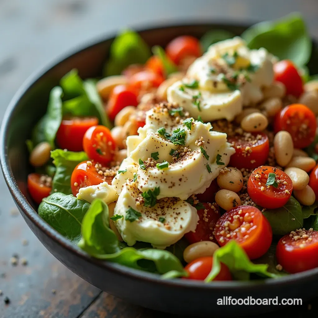Before topping the cheese, gently combine the halved tomatoes, diced cucumber, olives, sun-dried tomatoes, and chopped herbs in a separate container. This is where we introduce the core Mediterranean seasoning: a light drizzle of extra virgin olive oil, dried oregano, and a dash of red pepper flakes for warmth.