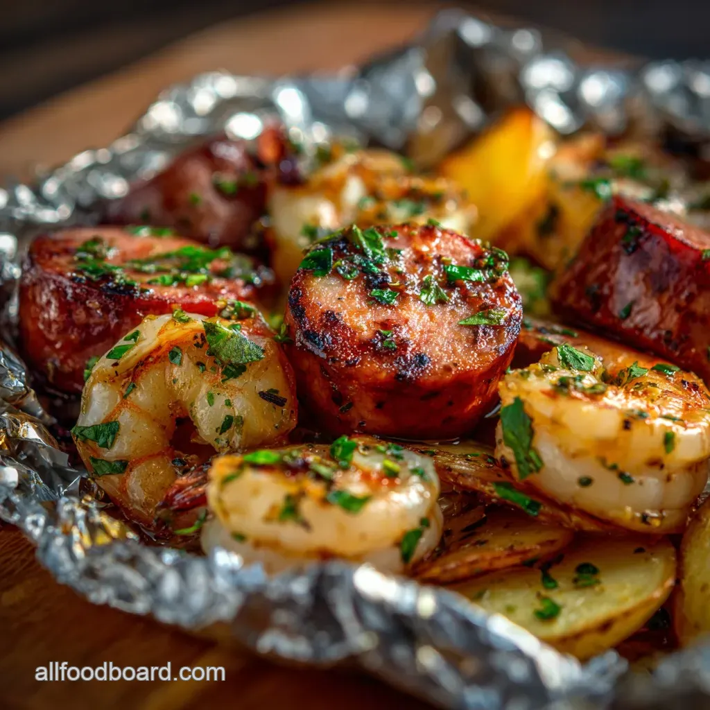 Foil Pack Meals: Sun-Drenched Sausage, Prawn, and Potato Packets