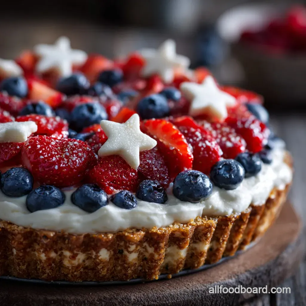 Using a tart pan instead of a deep springform pan creates a higher surface area-to-filling ratio. This means every single slice shows off that stunning patriotic berry display, making it an instant centerpiece.
