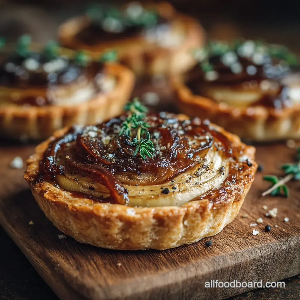 The visual appeal of these Caramelized Onion and Apple Tartlets can be enhanced with minimal effort. A tiny drizzle of high-quality truffle honey post-baking provides a beautiful sheen and an extra layer of complexity. If serving them as part of a larger spread, consider using different apple slices for decoration—perhaps a mix of Granny Smith and a slightly pinker variety like Pink Lady—to add colour contrast.