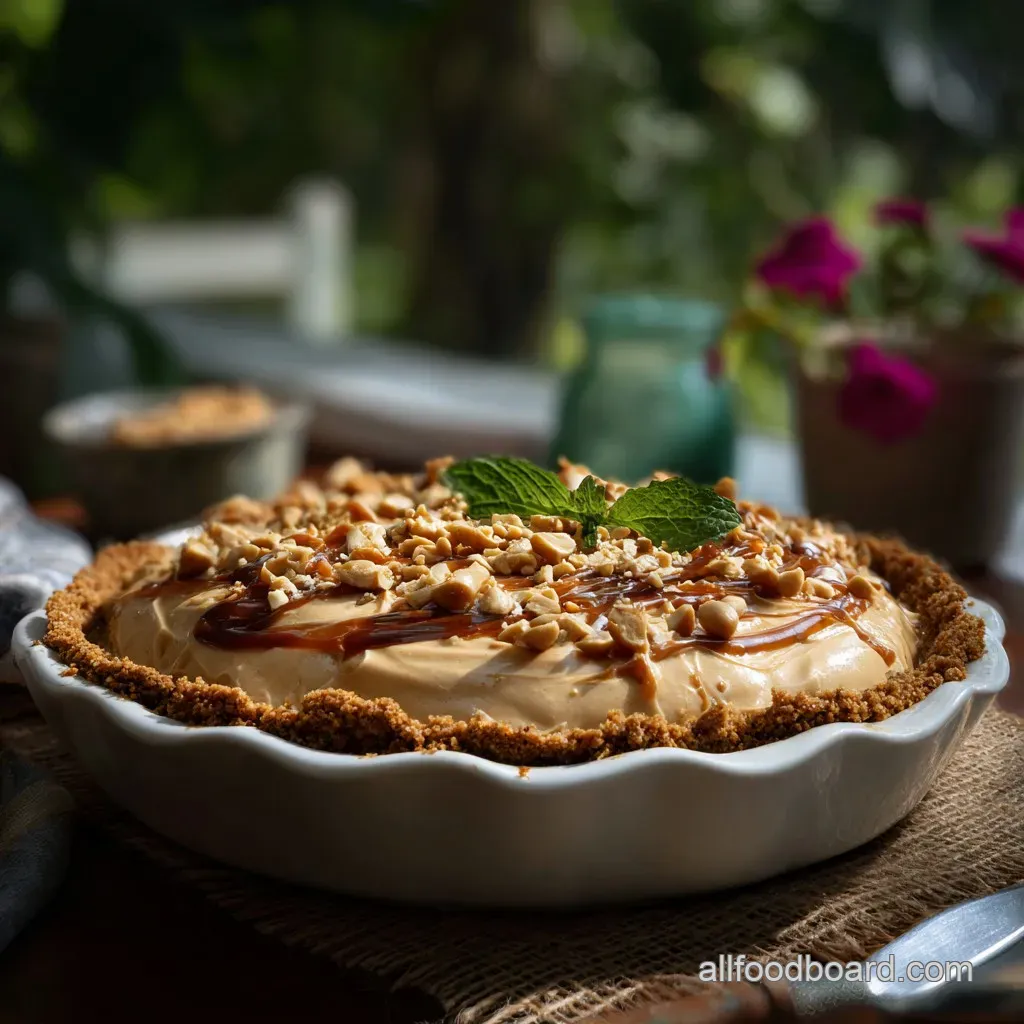 Presentation is everything with a pie this simple. I like to wait until the very last second to add the 40g of chopped peanuts. This ensures they stay perfectly crunchy and don't get softened by the moisture in the filling.