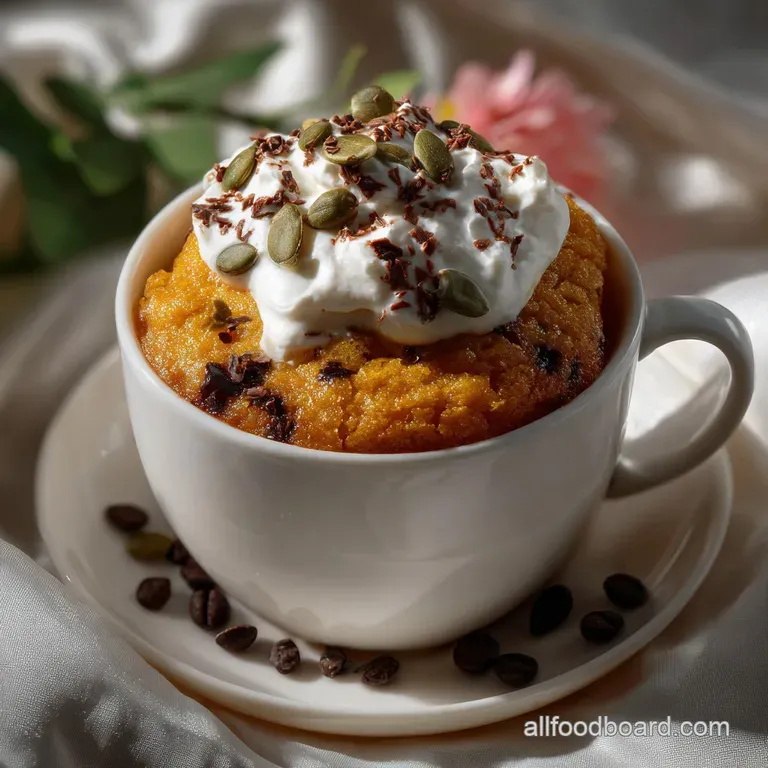 Chef's Note: If you want a deeper flavor profile similar to a Pumpkin Roll recipe, add a teaspoon of cream cheese to the center of the batter before cooking for a "lava" effect in your Pumpkin Mug Cake.