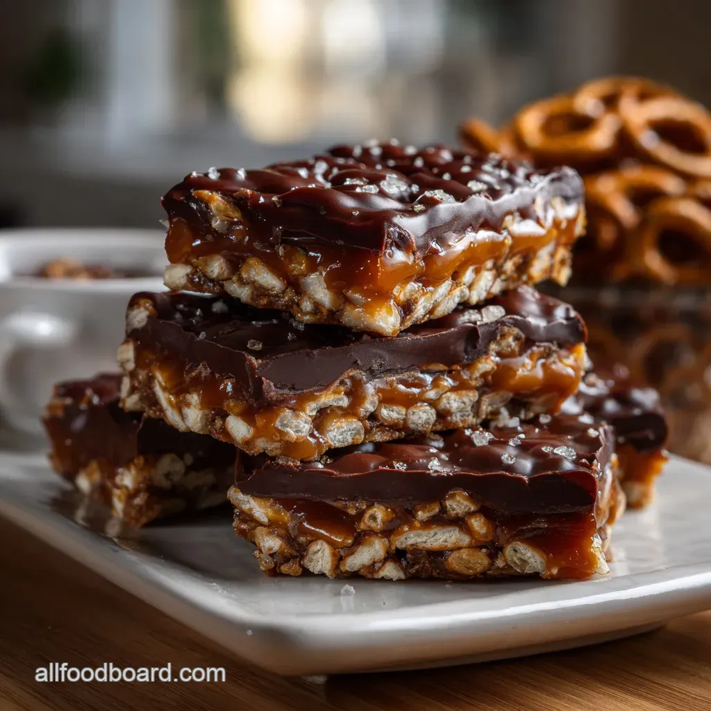 - Color Contrast: Serve these on a white or light colored marble slab. The dark mahogany of the chocolate and the golden hue of the pretzel base pop against a neutral background, making the textures look even more inviting.