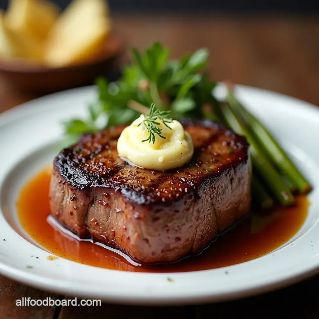 For plating, keep it simple, just like the man himself. A thick slice of the rested steak fanned slightly on a clean white plate. Garnish? A tiny drizzle of the pan butter, maybe one perfect, crisp sprig of the thyme we used for basting, and a sprinkle of flaky Maldon salt over the top.