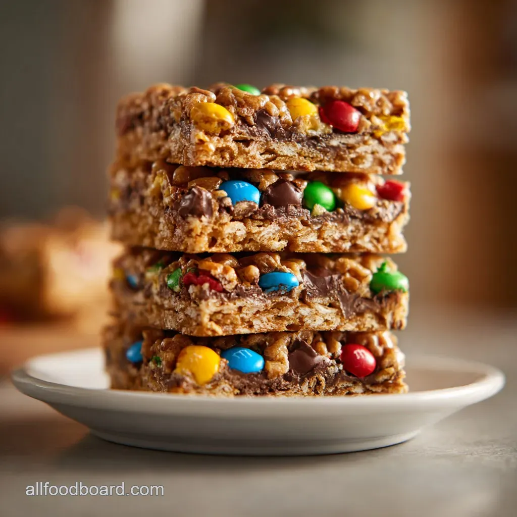 Chef's Tip: Freeze your M&Ms for 10 minutes before folding them in. This prevents the dye from bleeding into the dough, keeping your bars looking clean and vibrant.