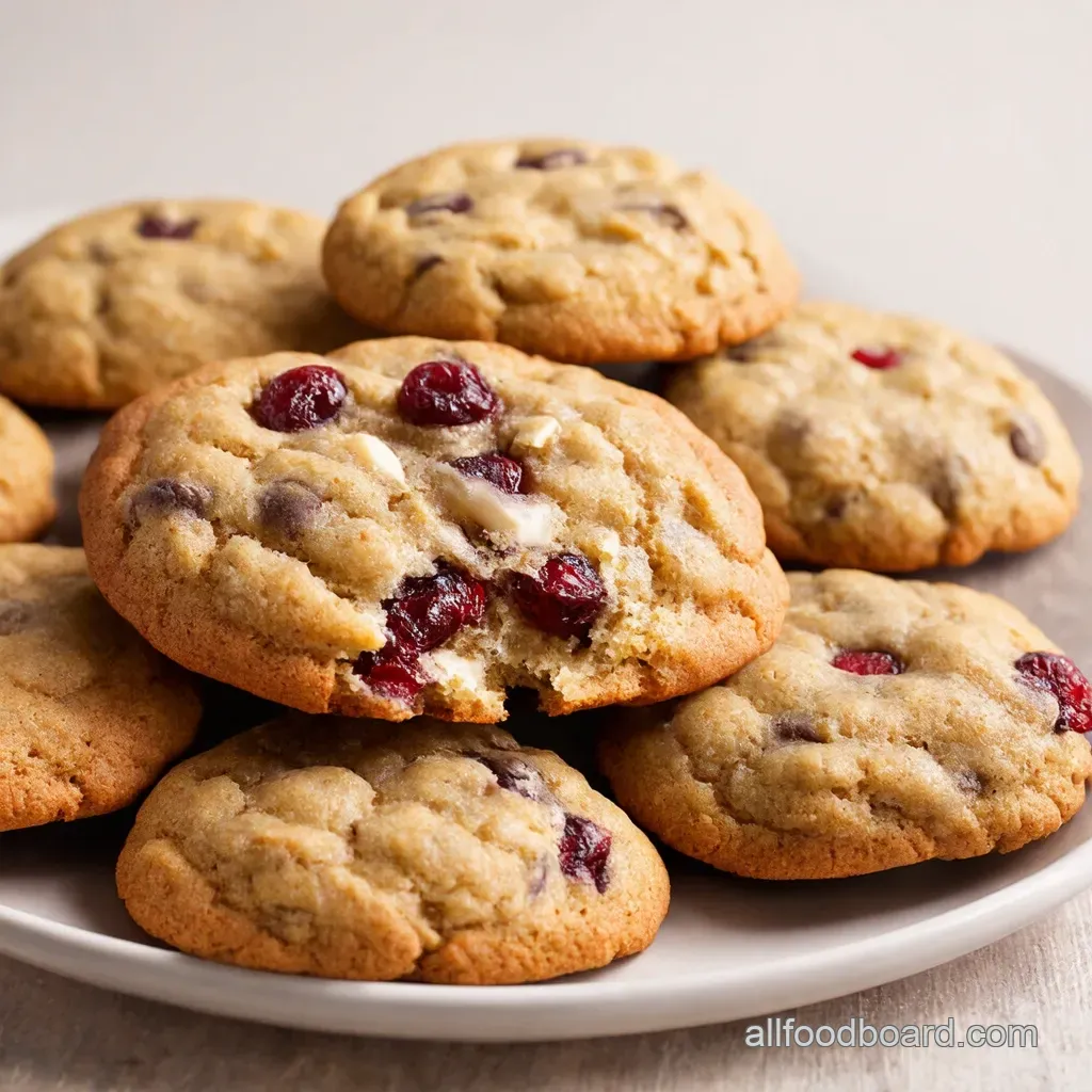 These cookies combine the classic comfort of oatmeal with the festive flavors of cranberries and creamy White Chocolate Chip Cookies .